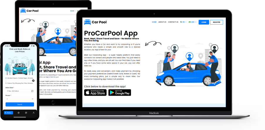 Explore our meticulously Designed and Developed Website, tailored for Seamless User Connections and a Hassle-free Ride-sharing Experience. From User Registration to Profile and In-app Wallet Management, our Feature-rich Website is meant to elevate your Carpooling Business.
