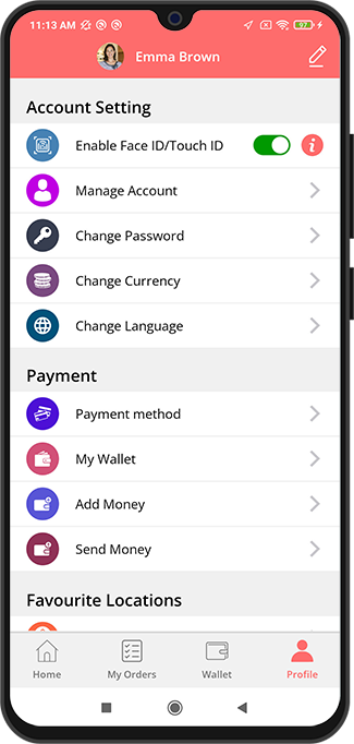 This is the page where the User, Store and the Driver can manage and edit their profiles. They can update their name, email address etc. from right here.