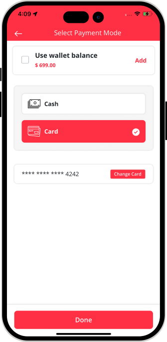 This Screen will allow Customers to checkout and confirm the purchase. Here User can add the Address, Payment Mode, option for "Deliver to your Doors" OR "Take Away". User can also add the Tip for the driver.