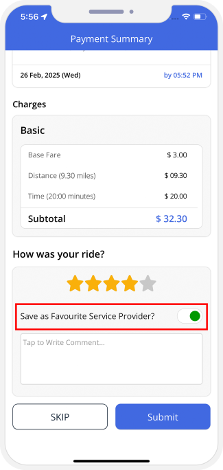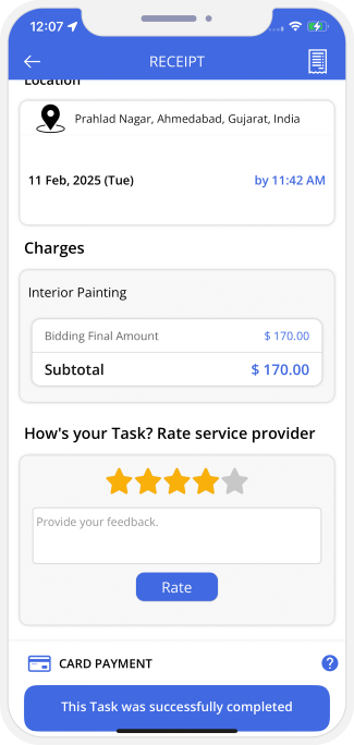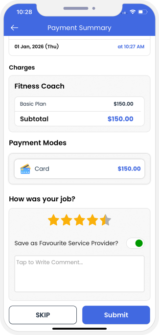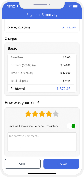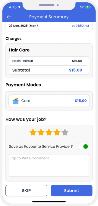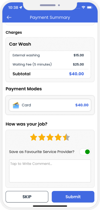 The Review and Rating section present on the app of the user and service provider both help both provide reviews to