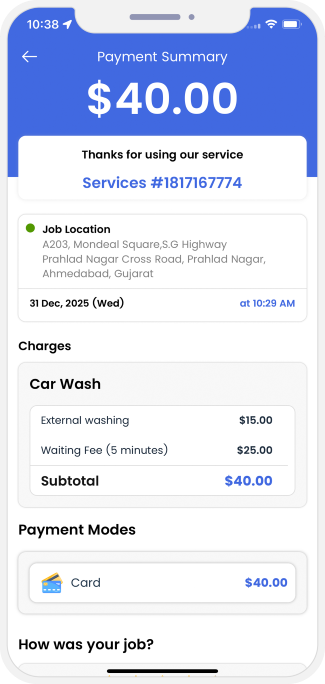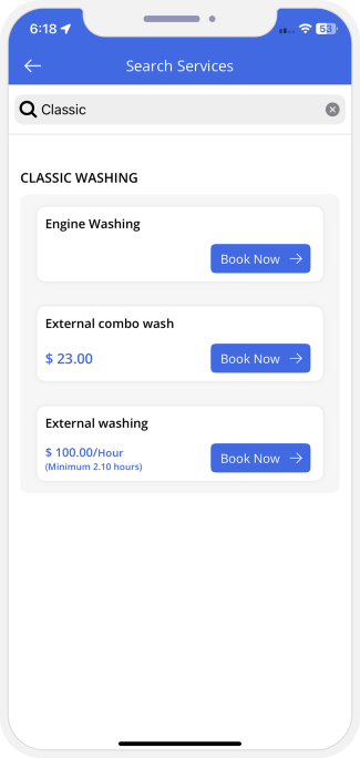Users can quickly book Car Wash & Care Services either instantly or for a later time. All services are delivered to their chosen location. Options include car washing, battery jumpstart, fuel delivery, bike washing, EV charging, key lock help, and more. The admin panel allows easy management of all Car Wash & Care Services.