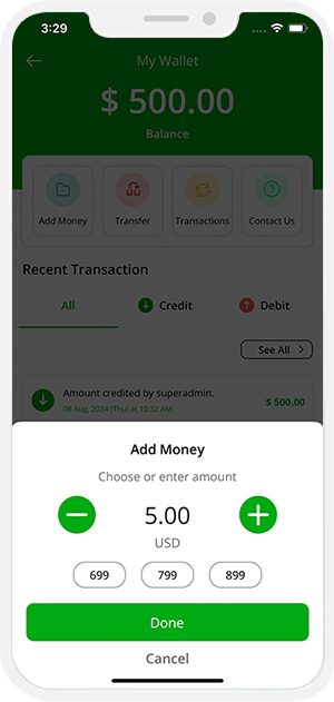 • All transactions made through wallet and their detail are displayed in the Wallet Section.
