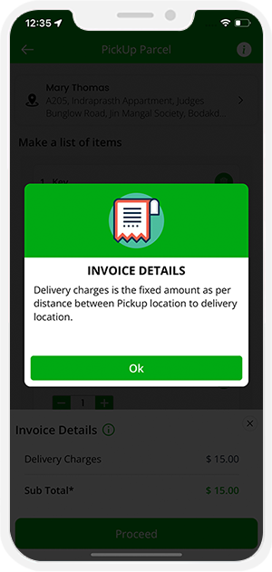 • The app will automatically calculate the Toll that may be charged on the Route. This amount is added to the total bill in the Invoice. This feature is exclusive for specific countries only.