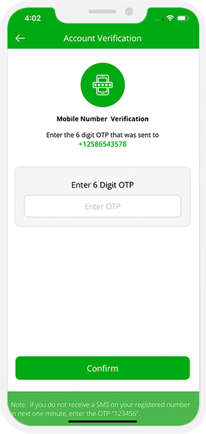 After entering the Phone number, User will be asked to enter the OTP or password (as set by the App owner).