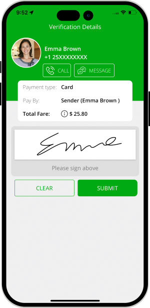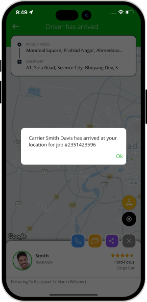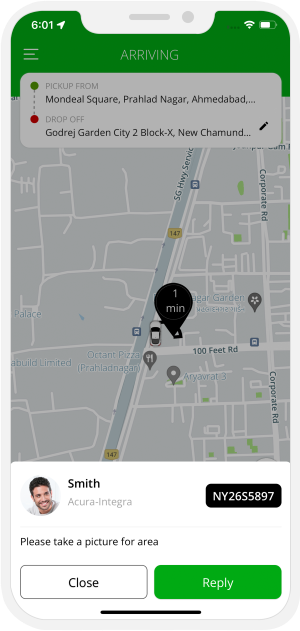 As soon as the Driver accepted the request of the User, thereafter, both can seamlessly chat with each other through the In-App chat feature. The feature however works only till the Trip / Delivery begins.