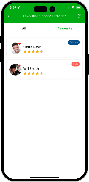 • The User can mark the driver as favorite from his App. Also, he can remove the Drivers from the favorite list anytime.