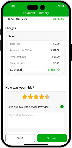 • Apart from this, the User will get the option to mark the Driver as a favorite so that next time they got the chance to do the Trip again with them.