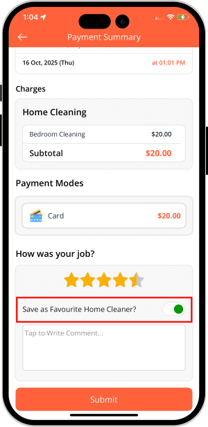 - This feature enables the Home Cleaner to manage the services offered by them.