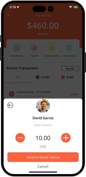 - The status of all the upcoming jobs would be visible to the user. In case of the request getting declined by the Home Cleaner, the User would be able to send the request to another Home Cleaner from their App.
