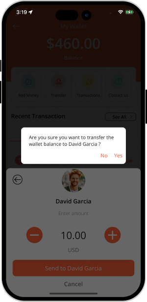 - This section provides the User quick and easy access to the functionalities of the App and also take a look at their profile picture, wallet balance, settings, etc, to name a few.