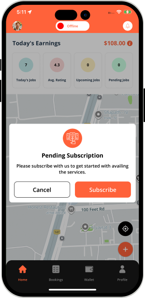 - The Home Cleaner would be shown all their pending and upcoming tasks on this screen and would enable them to set a radius for their work area range.