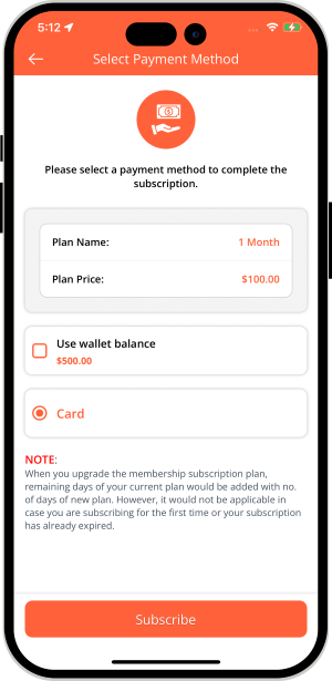 - With this feature, User would need to provide their current location and choose their preferred mode of payments from options like cash, card or wallet along with apply a promo code if any.