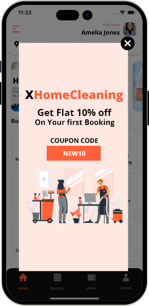 - The User receives a Promo Code that they can apply on their next service in case the Home Cleaner on Demand App has new offers in stock.