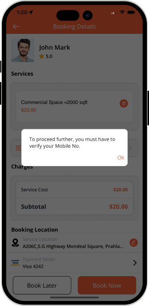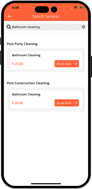 - Once the Book Now tab is tapped by User, the request would get sent to the selected Home Cleaner