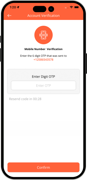 After entering the Phone number, user can either enter the OTP or the alphanumeric password. App Owner will decide and set in Admin Panel Settings of what he wants in his App & OTP or Password. OTP can be send either using Twilio or Firebase method.