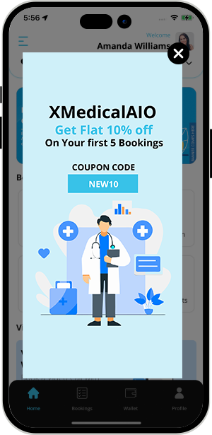 - Here the User is introduced to all the important features present in the App that include My Bookings, Favorite Medical Expert, Wallet, Notifications, etc. to name a few.