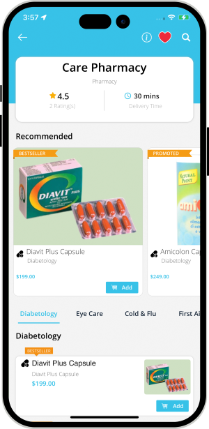 User can also order Medicines from nearby Pharmacy Stores using the Application.