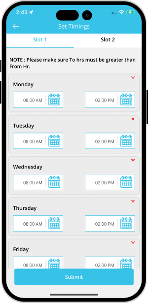 Day Wise Separate Timeslots for Stores - Pharmacy Delivery