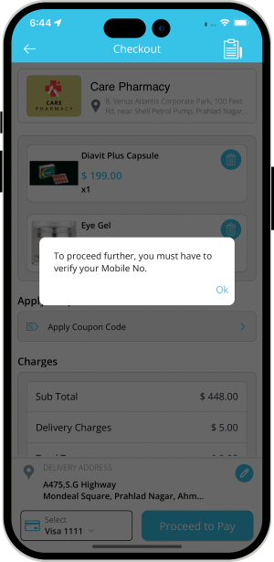 Driver can now reach the Pharmacy Store and pick up the order. The delivery driver will be able to see the particulars of the order so that he can pick it up without any confusion. He will then take a picture of having collected the order and update on the app as "ORDER PICKED UP".