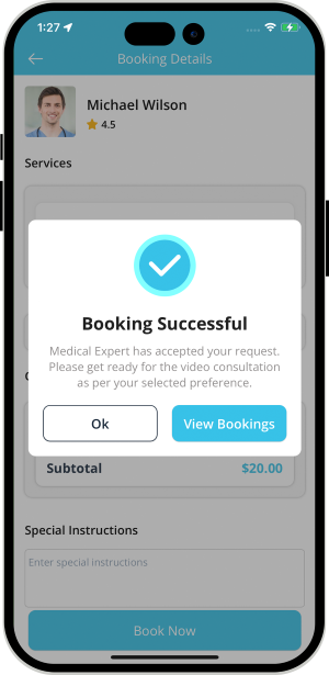 This Component will Allow your Users to Book Appointments and Video Consult with General Physician, Physiotherapist, Orthopedic, Pediatrician etc through the App.