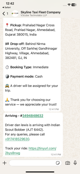 Expands your reach as customer’s book rides using WhatsApp, a platform they already know and trust.