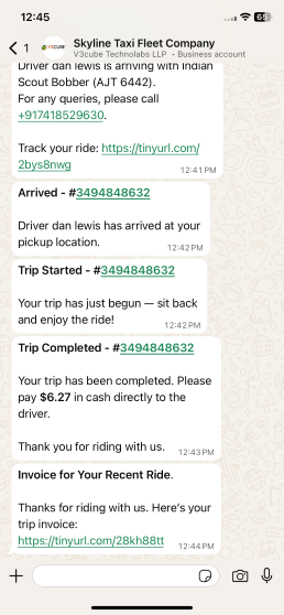 Step into the future of ride-booking with V3Cube’s AI-based WhatsApp Chatbot, designed specifically for taxi businesses seeking efficiency, speed, and seamless customer experience. No app downloads and lengthy booking steps. Your customers can now book rides directly within WhatsApp, anytime, anywhere.