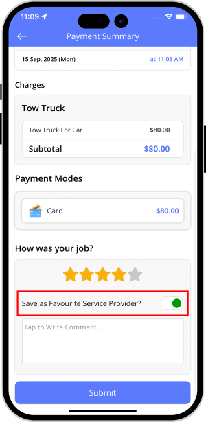 - This feature enables the Tow Truck Driver to manage the services offered by them.