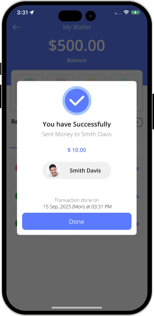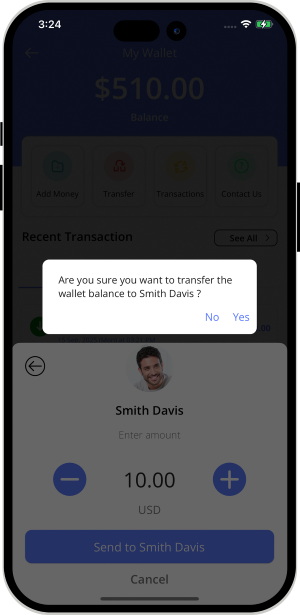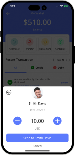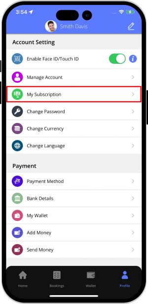 - This section provides the User quick and easy access to the functionalities of the App and also take a look at their profile picture, wallet balance, settings, etc, to name a few.