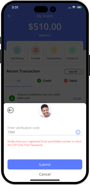 After entering the Phone number, User will be asked to enter the OTP or password (as set by the App owner).
