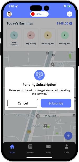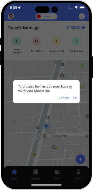- The Tow Truck Driver would be shown all their pending and upcoming tasks on this screen and would enable them to set a radius for their work area range.