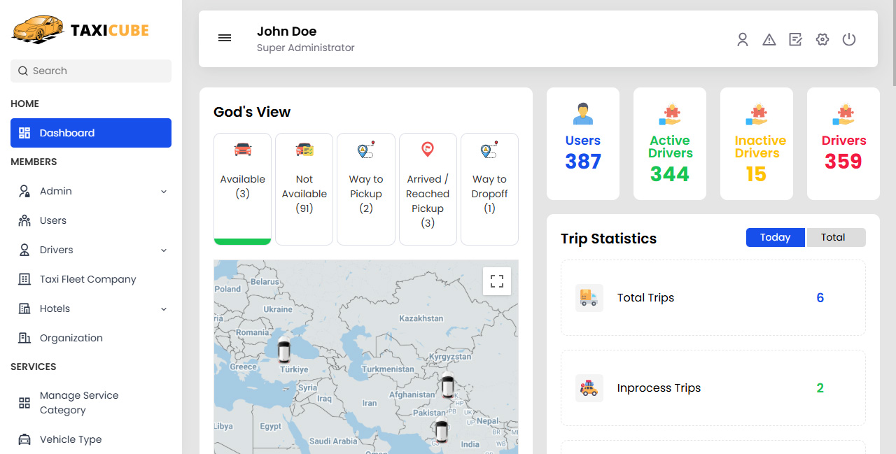 - Taxi App Administrator Panel Visuals of the Taxi App Admin Panel